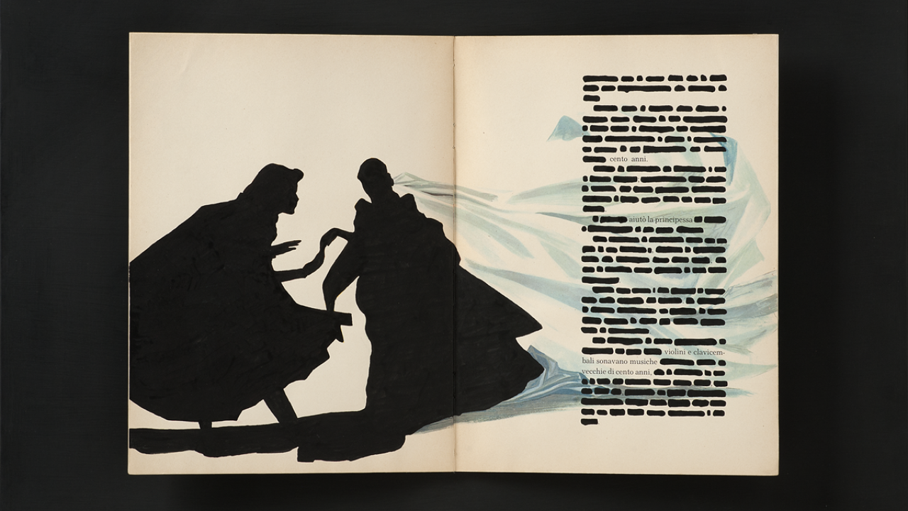 C’è oggi una fiaba è una mostra costruita come un racconto corale in cui la fiaba classica prende forma attraverso le opere di alcuni tra i protagonisti dell’arte moderna e contemporanea. Da Osvaldo Licini a Fausto Melotti, da Lucio Fontana a Michelangelo Pistoletto, da Piero Gilardi a Giuseppe Penone fino a Yves Klein, Carol Rama, Aldo Mondino, Emilio Isgrò, Luigi Mainolfi, Emanuele Luzzati, Joseph Kosuth, Kiki Smith, Grazia Toderi, Pinot Gallizio, Luigi Veronesi, Joseph Beuys, Sofia Cacherano di Bricherasio e Giuseppe Pietro Bagetti, il percorso intreccia linguaggi, epoche e sensibilità differenti per restituire la fiaba non solo come genere letterario o illustrativo ma come struttura del pensiero visivo. Le opere, che provengono da istituzioni torinesi (GAM, Museo della Frutta, Musei Reali, Teatro Regio, MUSLI), da importanti collezioni private, fondazioni, gallerie internazionali e librerie antiquarie, non illustrano storie: ne assumono i meccanismi profondi - lo specchio, il bosco, l’oggetto magico, la scarpetta, la metamorfosi, il lieto fine - trasformando il Castello di Miradolo in uno spazio intimo e insieme collettivo. È una mostra che mette a confronto le immagini con la dimensione immaginaria del racconto. Non una sequenza di opere, quindi, ma stanze come capitoli, oggetti come indizi, immagini come soglie.
