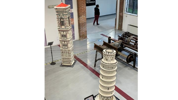 Nella mostra sono esposti 25 modelli, tra cui la ciminiera dell'ex opificio distrutta nel 2019 da una tromba d’aria. Le opere riproducono in scala alcuni tra i più celebri monumenti italiani - come la Mole Antonelliana, la Fontana di Trevi, il Duomo di Milano e il Ponte di Rialto - realizzati con oltre un milione di mattoncini LEGO®, frutto di un accurato lavoro di progettazione e ricerca storica dell’artista milanese Luca Petraglia. L’esposizione valorizza il dialogo tra le installazioni e gli spazi dell’Imbiancheria del Vajro di Chieri, intrecciando la storia dell’architettura italiana con la tradizione tessile locale.
