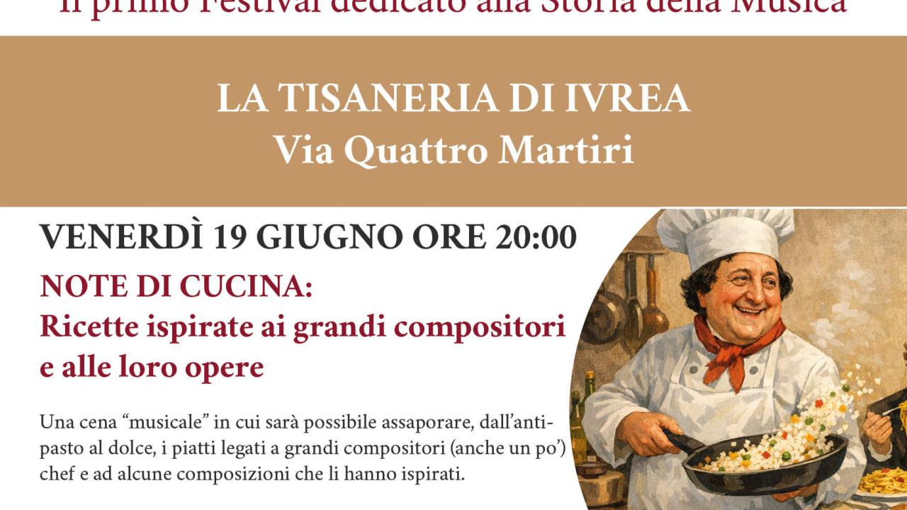 Una cena “musicale” in cui sarà possibile assaporare, dall’antipasto al dolce, i piatti legati a grandi compositori (anche un po') chef e ad alcune composizioni che li hanno ispirati. Prenotazioni entro mercoledì 17 giugno.