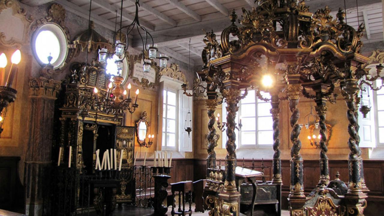 Considered by some experts to be among the most beautiful in the world, the Synagogue of Carmagnola is a place of immense charm. On the outside, it appears very similar to every other late 17th century building, but its interiors and furnishings are incredibly beautiful. In keeping with tradition, it is situated on the last floor of a building: a spiral staircase leads to a vestibule with a hand basin and a ladder leads to the women’s gallery, screened by a wooden grate. The quadrangular prayer room is illuminated by seven large windows decorated with stuccoes. Fie golden lamps hang from the ceiling, divided harmoniously by wooden beams and there are also numerous wooden high-backed chairs arranged around the walls. In the middle room stands the octagonal canopied Tevà bearing the date 5526, which corresponds to our 1766. The Aron is decorated with carved images representing the Temple in Jerusalem, the Menorah, the Tables of the Law and the Sacrificial altar.