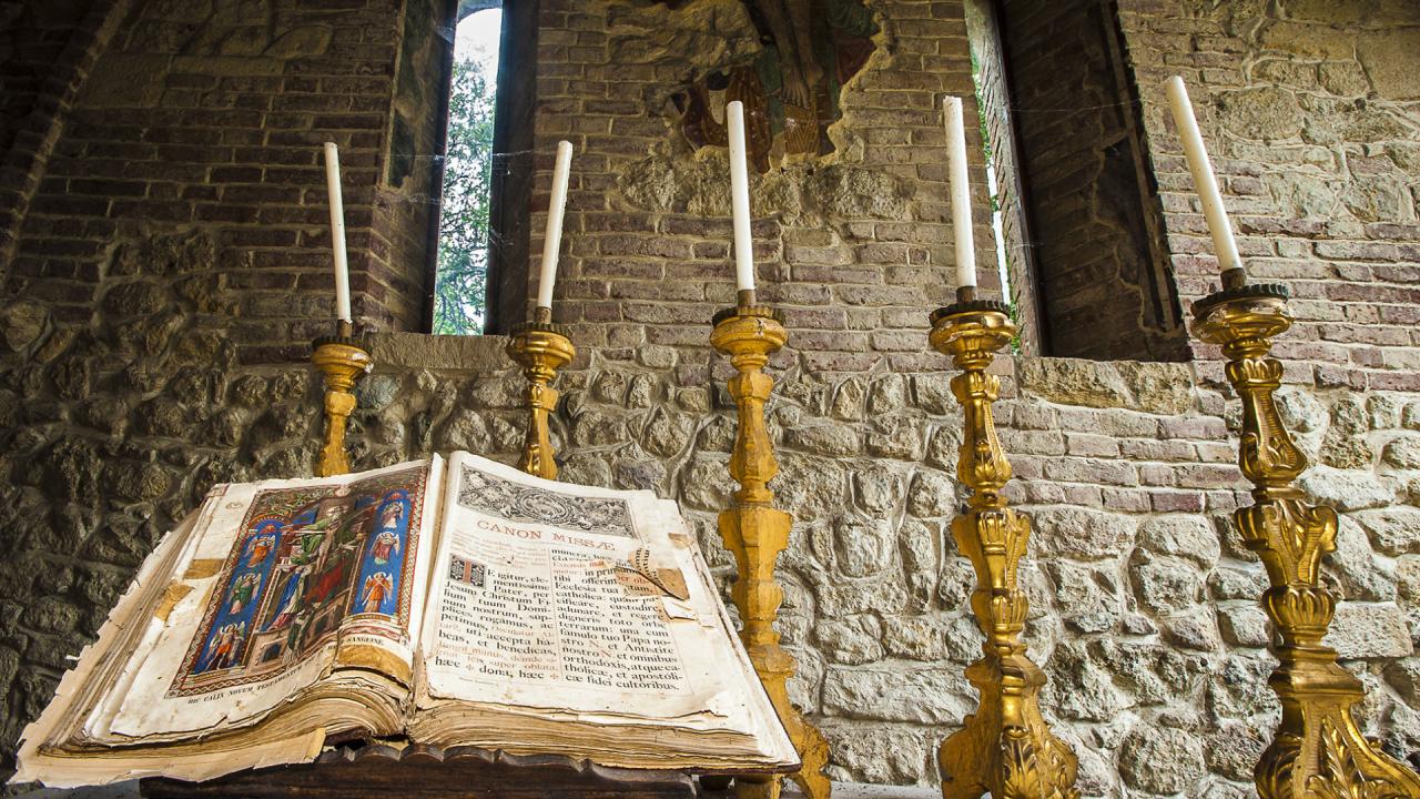 The Montiglio Castle (Castello di Montiglio), which, from its hill, dominates the town, dates back to the 13th century. The present structure, with its irregular “L-shape” and elongated linear layout, is what remains of the more complex structure that originally had a “U-shape” layout and included a keep in the center of a forepart that spread out in front of the bridge in order to better use the defensive characteristics. The bastions are instead the result of the work carried out during the 16th century. Originally a three-storey construction defended by a sturdy surrounding wall built in 1481 at the order of the Marquis Guglielmo VIII, the castle underwent significant reconstruction during the XVIII century. In order to give residential dignity to the castle, a large staircase, an elegant hall with an oval floor plan called the “Music Room”, and a terrace with a tower above were constructed, as well as a portico that opens to a garden where a striking labyrinth created with laurel bushes and boxwood is found.