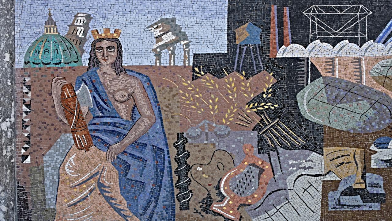The mosaics, made in 1940, were the work of Gino Severini, and today they are placed at the entrance to the Post Office Building, covering an area 38 meters long and 2 meters high.
