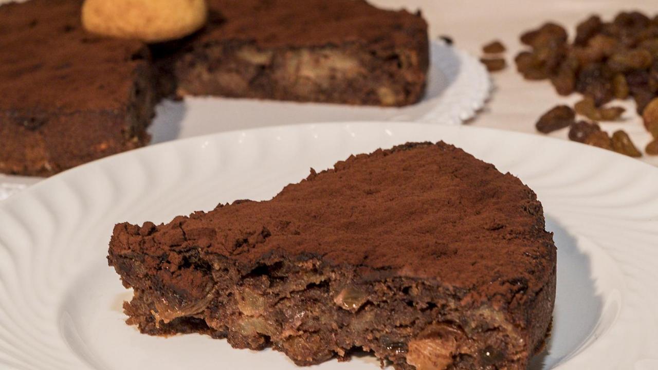 Prepare a large, shallow baking tray, greasing it with butter or lining it with ovenproof paper. Pour in the mixture, sprinkle with the cocoa and bake in a preheated oven at 170°C for about 40 minutes.