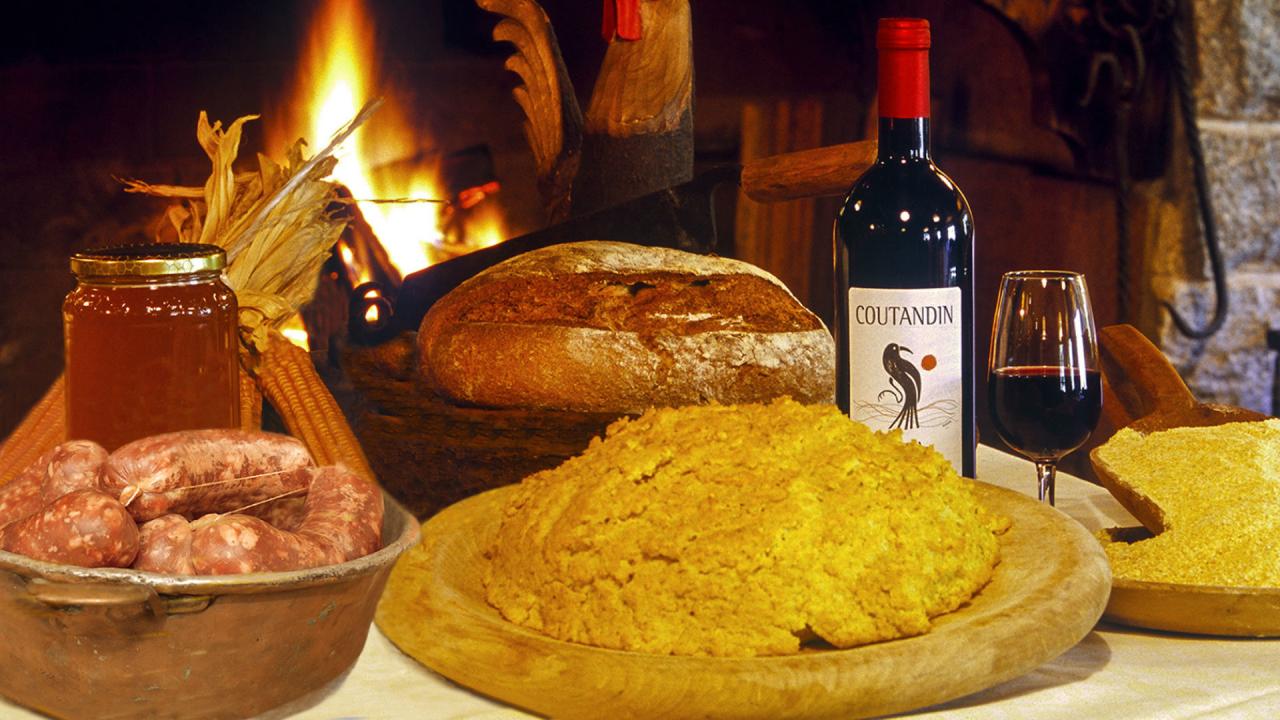 Pour two litres of water into a copper pot and place over the heat. When the water starts to simmer, add salt, and, stirring quickly with a whisk to prevent lumps from forming, sprinkle in the flour. Lower the heat and continue stirring slowly with a long wooden spoon, until the polenta begins to come away from the sides of the pot, forming a crisp crust.