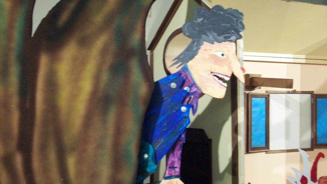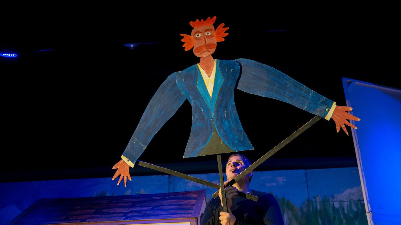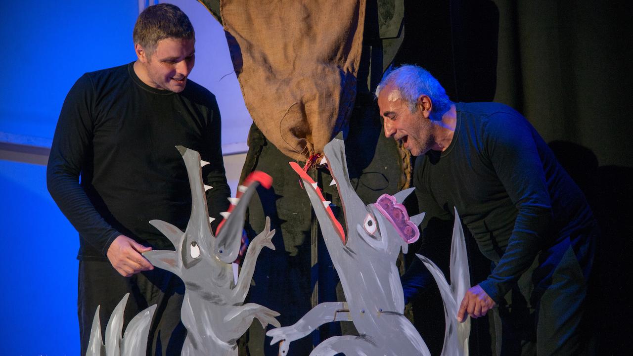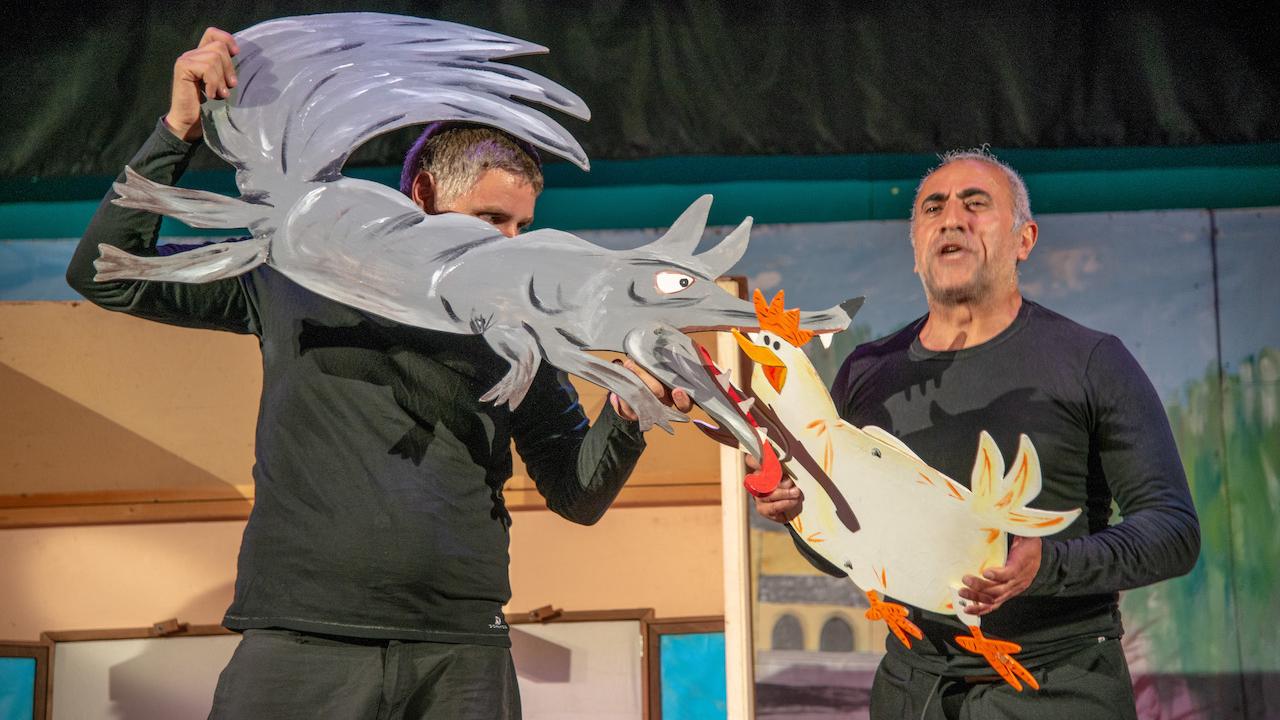 The eternal struggle between good and evil, the strong and the weak. But here, thanks do ingenuity, the weak prevail over the strong. A simple work that, for once, doesn't cast the wolf in a bad light, nor the intelligence of a poor little hen. Often, strength isn't necessary, not is it necessary to be particularly gifted to solve life's problems. The show is fueled by an almost continous and moving soundtrack that accommpanies the movements and onomatopeic sounds of this story's protagonists: the viewer is captivated by the enchanting and disarming simplicity of the great puppets the acrot use to enchant spectators of all ages. Great, as always, and engaging, as in almost all of our shows, is the magic evoked by the use of shadows on giant panels.