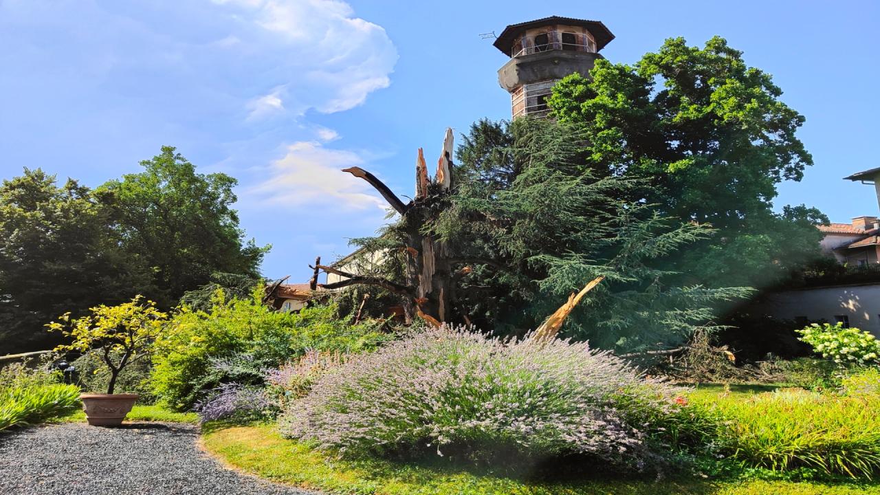 Il profilo della città di Biella è cambiato per sempre: accanto alla quattrocentesca Torre elevata da Sebastiano Ferrero all’inizio del Cinquecento, svettava fino a pochi giorni fa un monumentale Cedro, piantato presumibilmente verso il 1870. Nella notte del 12 luglio 2023 un fulmine ha colpito il cedro e lo ha fatto esplodere in mille frammenti.
