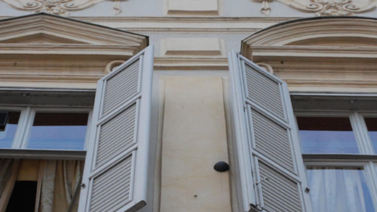 Immagine: palla di cannone situata tra gli appartamenti sopra il bar Mokita in piazza San Carlo. Img credits: www.tastingtheworld.it