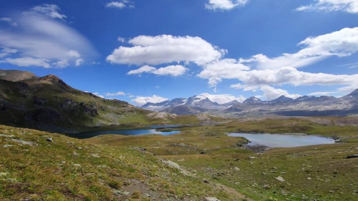A questo punto, dopo poco meno di mezz'ora, si incontra il primo laghetto a quota 2.157 metri. Non è molto ampio, ma essendo paludoso e circondato dalle Levanne che si specchiano sull'acqua, regala sempre grandi emozioni.