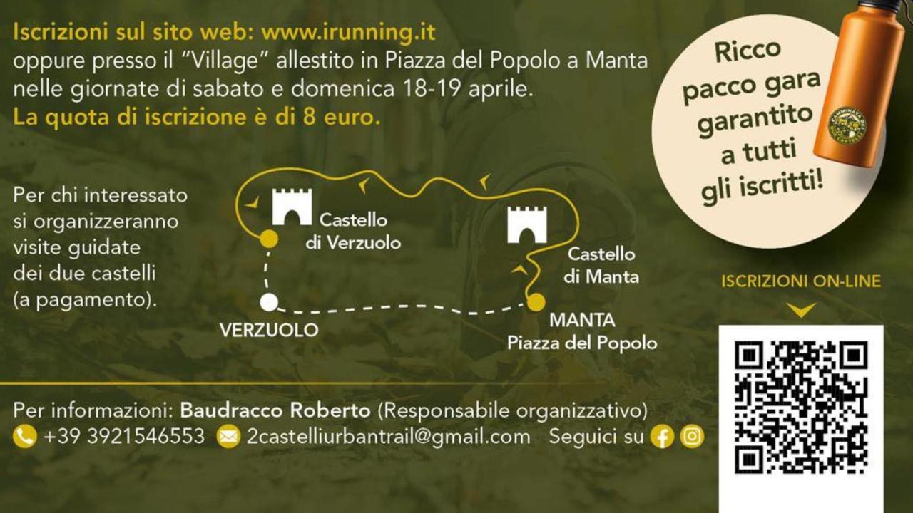 La partenza è prevista alle ore 10.00 dai giardini del Castello della Manta, con arrivo al Castello di Verzuolo, attraversando un itinerario panoramico tra natura, storia e scorci del territorio saluzzese. L’iniziativa è aperta a tutti e pensata per unire attività fisica, turismo lento e scoperta culturale.