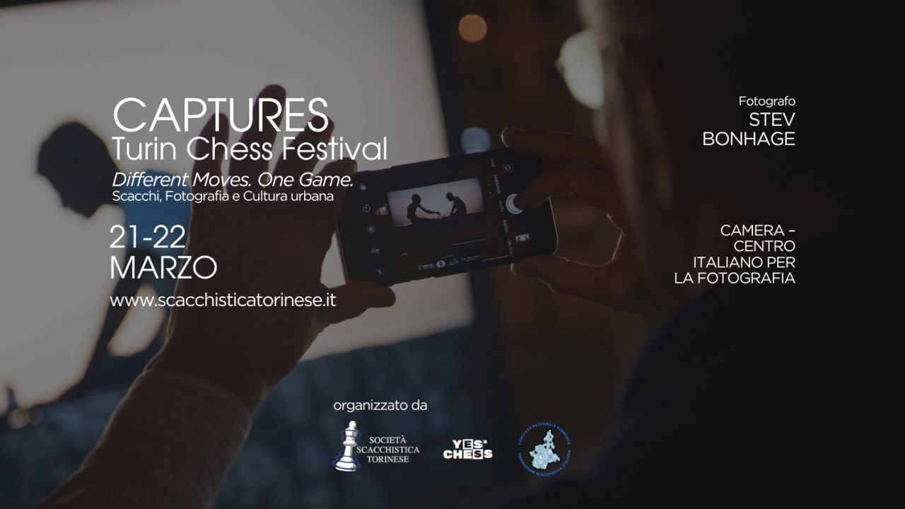 Organizzato dalla Società Scacchistica Torinese, Yess Chess Projects e dal Comitato Regionale della Federazione Scacchistica Italiana, in collaborazione con CAMERA. Centro Italiano per la Fotografia, il festival propone uno sguardo contemporaneo sul mondo degli scacchi, raccontandoli come incontro tra cultura, arte, sport e dimensione sociale.   • sabato 21 Notte Bianca… e Nera: le sale espositive accolgono un Torneo Rapid di scacchi. Il pubblico può assistere dal vivo alle partite, immerso nell’atmosfera del museo e accompagnato da musica jazz dal vivo; è inoltre possibile visitare la mostra di Edward Weston.   • domenica 22 Social Chess in Action: una giornata che valorizza il ruolo educativo e inclusivo degli scacchi. In programma una simultanea tutta al femminile nel cortile interno con una giovane scacchista cresciuta nella Società Scacchistica Torinese, che sfiderà 10 avversarie contemporaneamente, e workshop gratuiti per bambini su prenotazione. A chiudere, una pausa gelato con Mara dei Boschi.   In entrambe le giornate sarà visitabile la mostra Captures del fotografo internazionale Stev Bonhage.