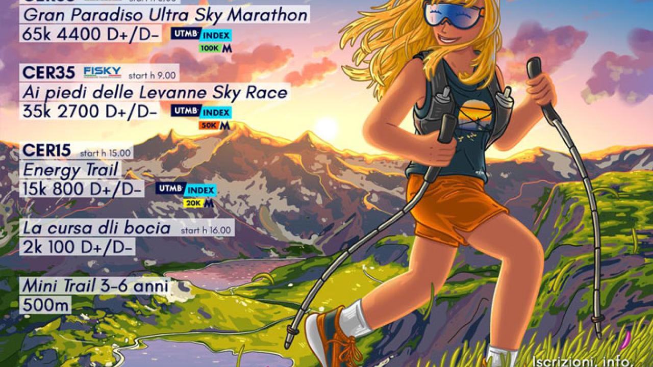 Di corsa tra la nuvole! Su e giù di corsa per le montagne di Ceresole Reale.    • Gran Paradiso Ultra Sky Marathon, 65 km, 4.400 m D+/D- (calendario nazionale)   • Ai Piedi delle Levanne Sky Race, 35 km, 2.700m D+/D- (calendario nazionale)   • Energy Trail, 15k, 800 m D+/D-   • La Cursa dli Bocia, 2 km, 100 m D+/D- (7-15 anni)   • Mini Trail, 0.5 km (3-6 anni)   E dalle ore 19.00: Beer&Music Fest.
