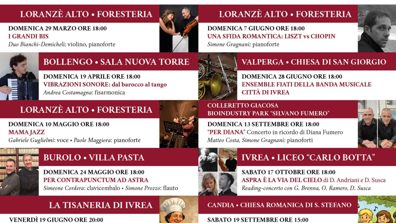 L’idea del Festival nasce dal desiderio di offrire una serie di concerti dal vivo, ideati e commissionati con il preciso intento di ripercorrere un viaggio nella storia della musica, esplorando gli stili compositivi e i vari repertori (quest’anno dalla musica tradizionale al jazz) attraverso le diverse epoche storiche, valorizzando anche il patrimonio architettonico, storico e culturale dell’Anfiteatro Morenico di Ivrea: per questo motivo i concerti verranno realizzati in chiese romaniche, palazzi storici, foresterie settecentesche, siti industriali moderni e parchi naturalistici. Ogni concerto sarà introdotto da brevi presentazioni storico-musicologiche e guide all’ascolto: conoscere alcuni aspetti e aneddoti delle vite dei compositori, peculiarità e curiosità sulla musica, possono non solo ampliare la conoscenza musicale e culturale in generale ma permettono un ascolto più consapevole. Inoltre continua la bella collaborazione con l’Associazione Liceo Musicale di Rivarolo per dare spazio ai più giovani: alcuni dei concerti saranno aperti dai giovani alunni che potranno cimentarsi in una esibizione pubblica prima dell’ospite principale.
