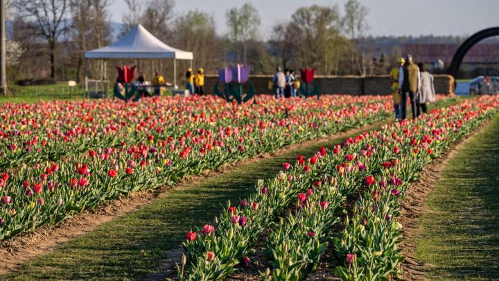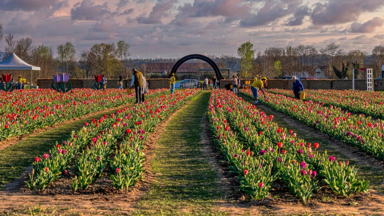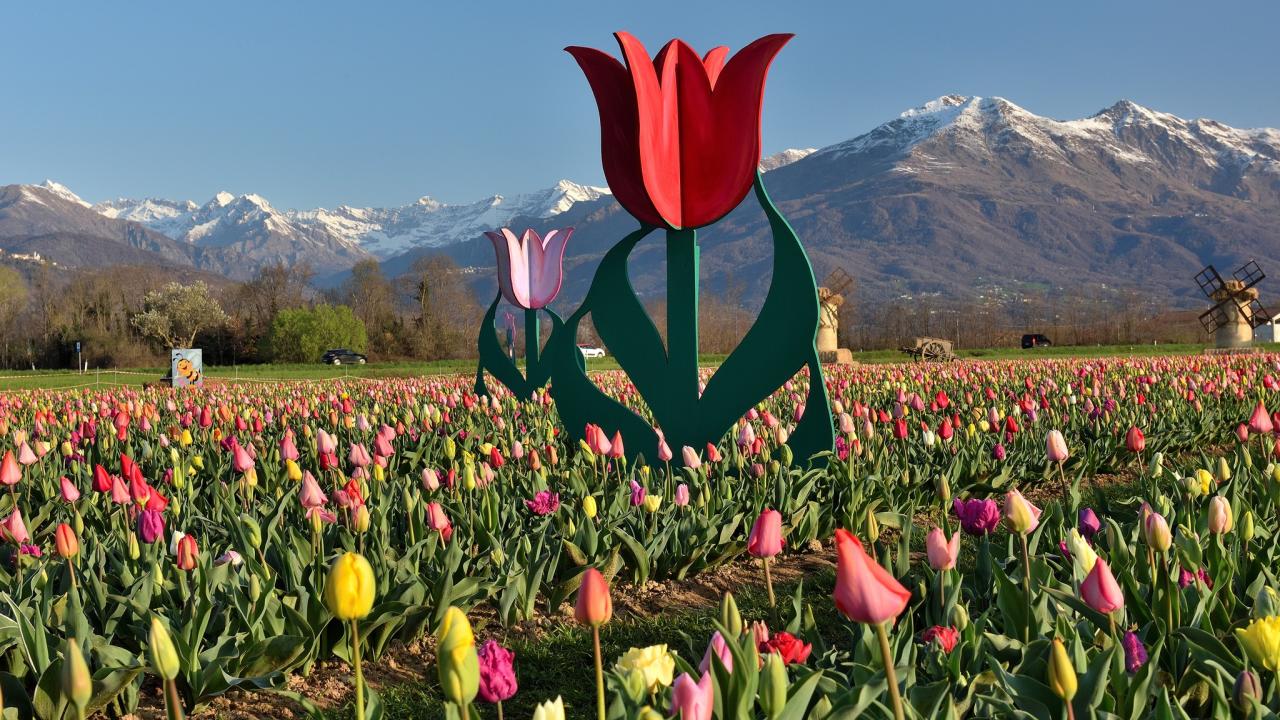 Nel pieno della primavera, a Favria prende vita Il Villaggio dei Tulipani: un’esperienza unica dove natura, arte e divertimento si incontrano tra oltre 250.000 tulipani in fiore provenienti dall’Olanda, di moltissime varietà, colori, dimensioni e forme. Passeggia tra filari multicolori, scopri scenari da fiaba con mulini e allestimenti tematici e lasciati avvolgere dai profumi e dalle sfumature di questa straordinaria meraviglia floreale. Potrai ammirare la fioritura, scattare fotografie suggestive, raccogliere i tuoi tulipani preferiti per creare un bouquet personalizzato oppure partecipare ad attività interattive, workshop creativi e percorsi dedicati alla biodiversità e al mondo delle api, ideali per famiglie e scuole. Non mancherà l’area dedicata allo shopping, con bancarelle di artigianato handmade e produttori locali, dove sarà possibile acquistare fragole appena raccolte e ricevere i tulipani con il bulbo, pronti per essere ripiantati l’anno successivo. Potrai fermarti a pranzo nella nostra area food o rilassarti al pomeriggio gustando un gelato artigianale. Con un’atmosfera accogliente e adatta a tutte le età, Il Villaggio dei Tulipani rappresenta la meta perfetta per una gita primaverile indimenticabile: un momento di relax immersi nella natura e una vera festa dei sensi tra colori, profumi e bellezza.