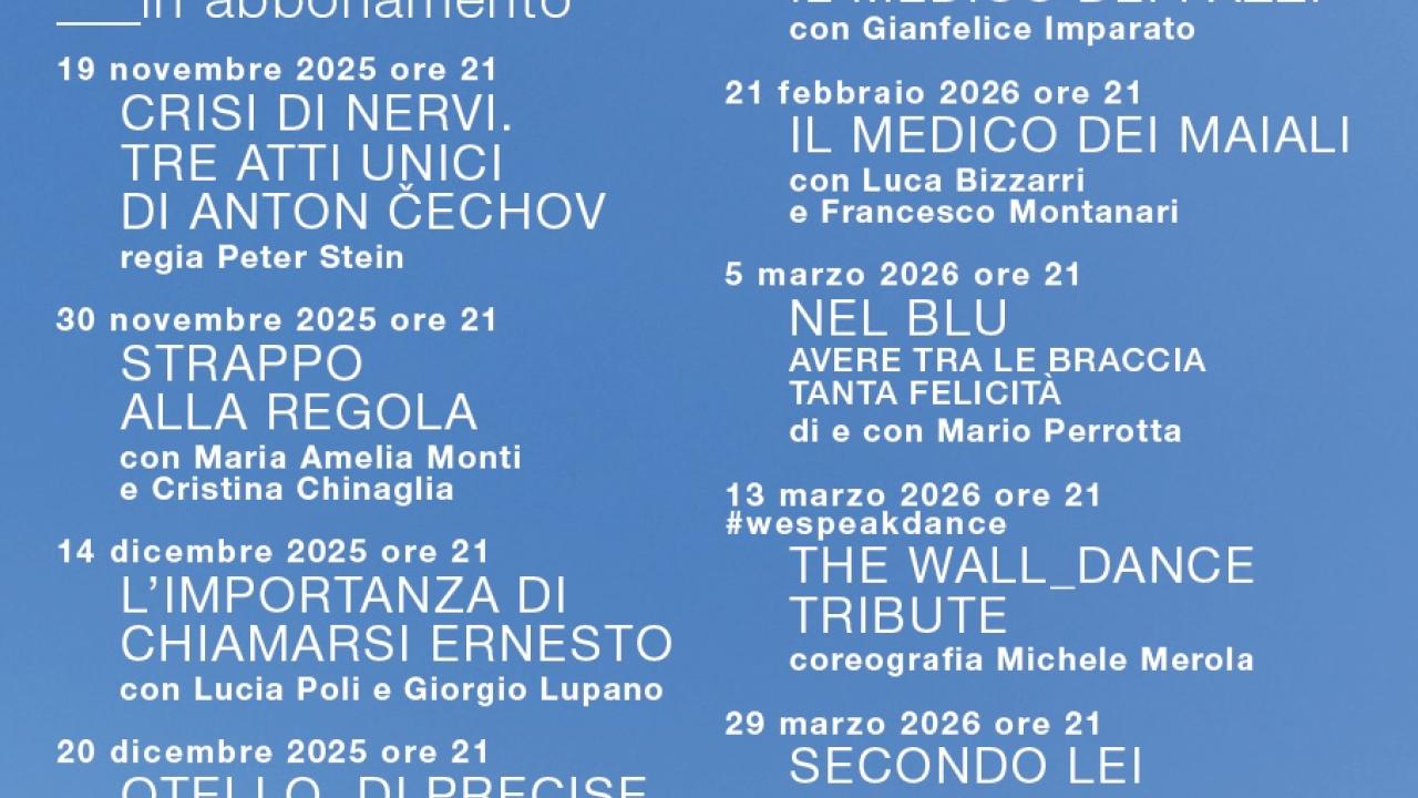 Il Teatro Sociale di Pinerolo, in collaborazione con la Fondazione Piemonte dal Vivo, annuncia la stagione teatrale 2025/2026: tredici titoli in abbonamento e due appuntamenti fuori abbonamento, che vedranno protagonisti nomi di primo piano del teatro italiano, con uno sguardo rivolto a temi centrali della contemporaneità. Scopri tutti gli appuntamenti